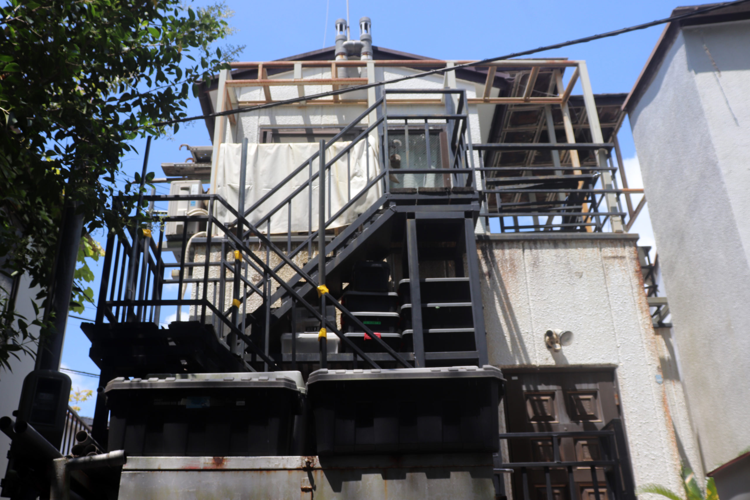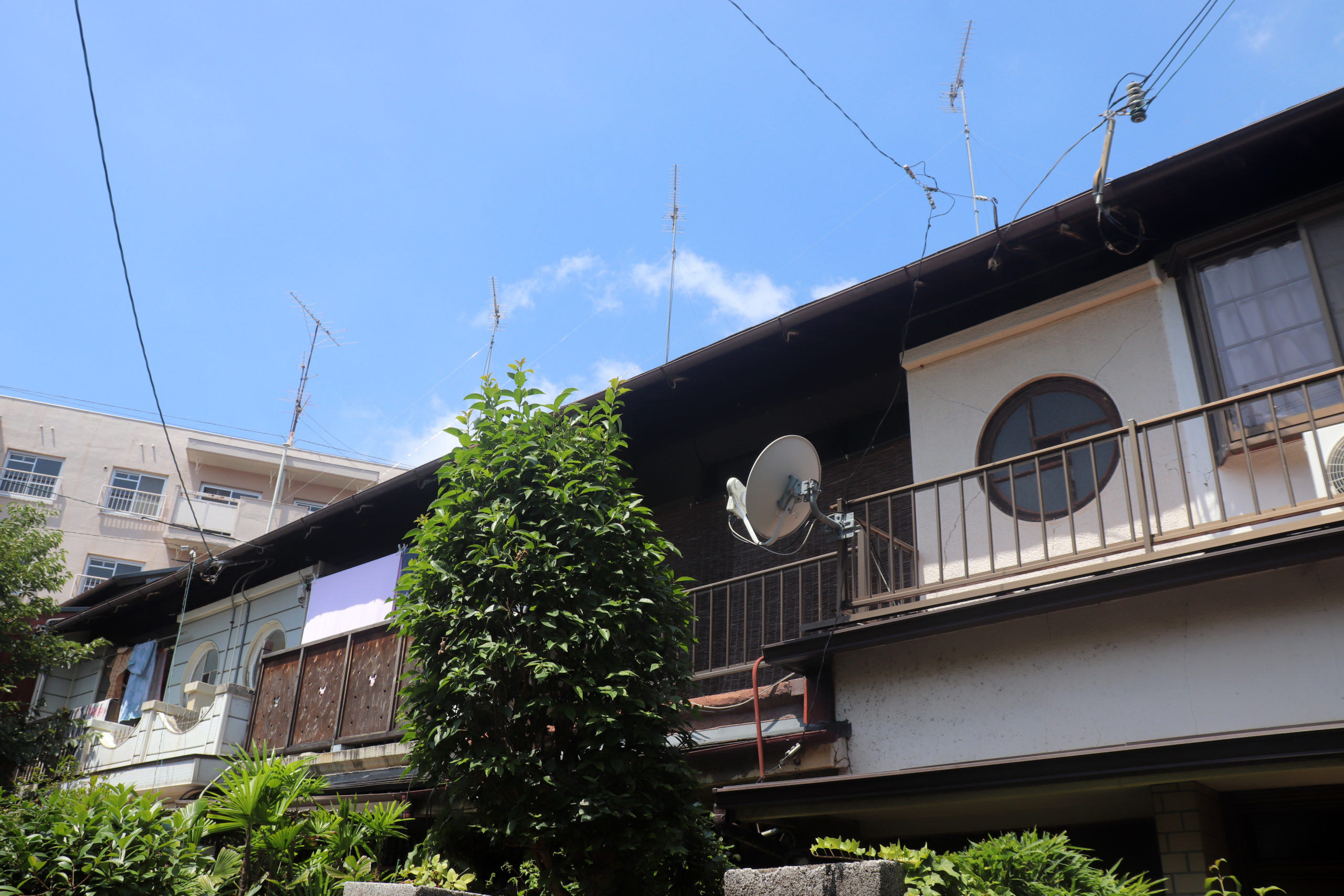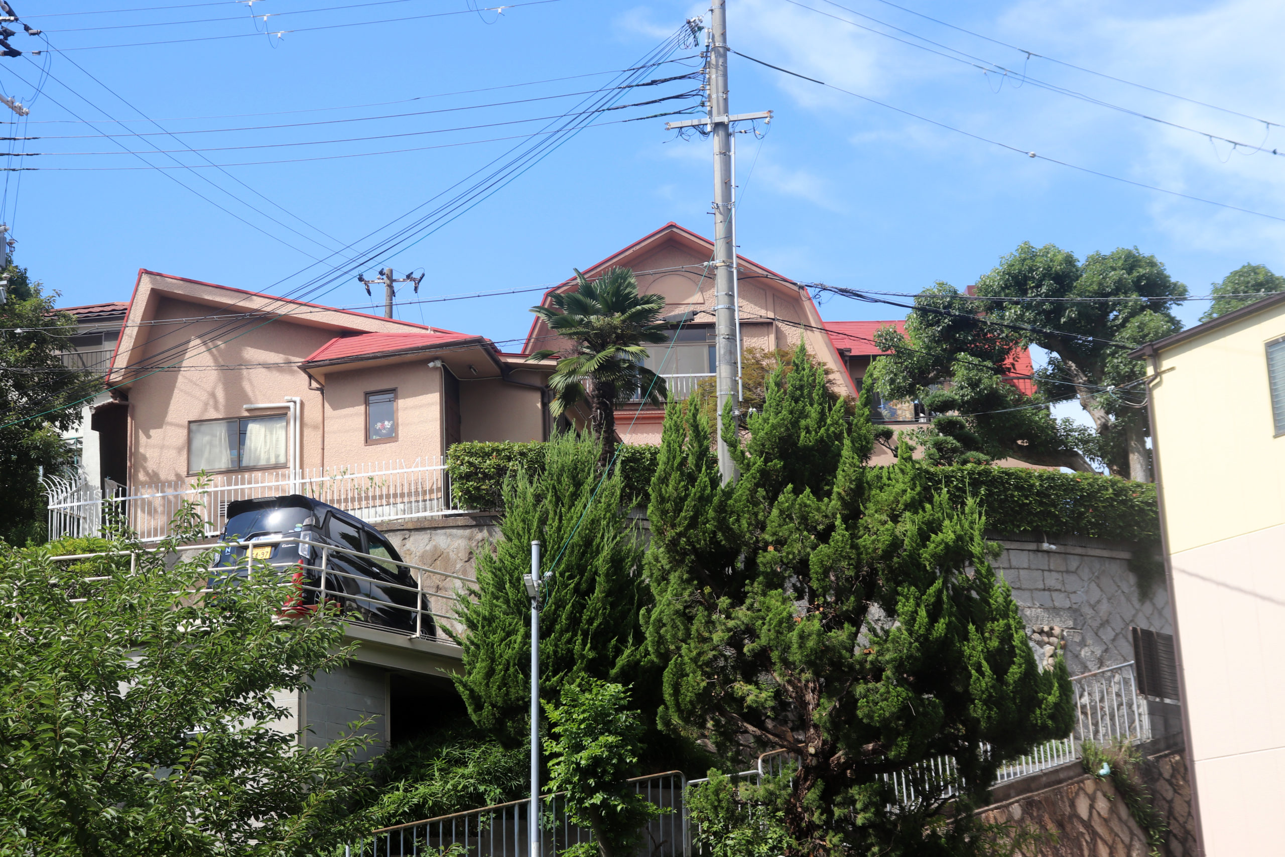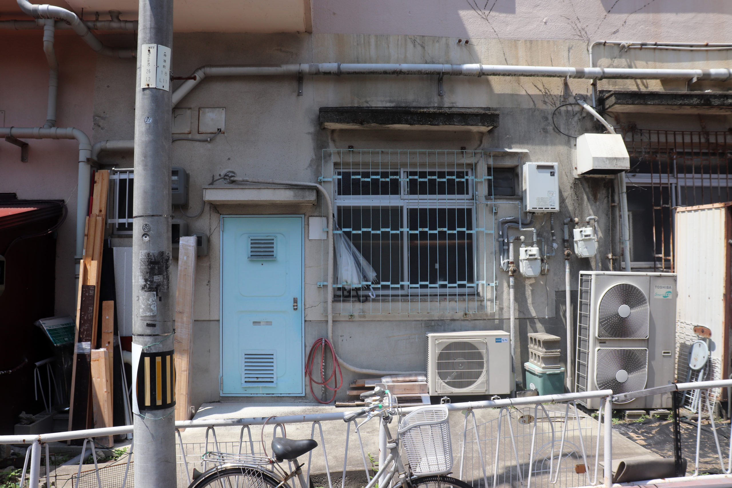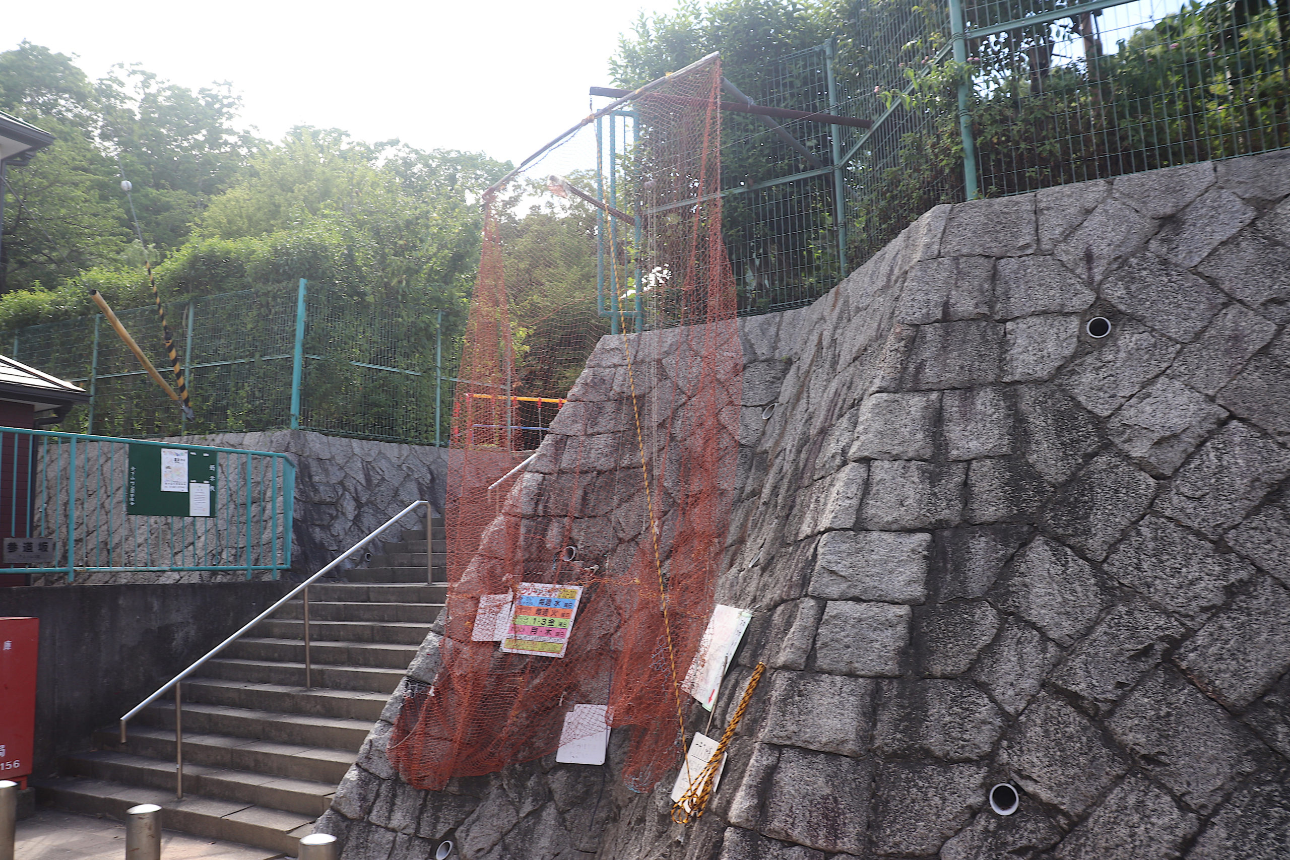 最初は上沢駅を起点に、校舎がグランドの土留めを果たしている市立神港橘高校付近から、新湊川のトンネルを眺め、房王寺線沿いの建て替え前と後が見られる、1階に賃貸の店子が入る形式の「下駄履き」ではなかった、まさかの区分所有の店舗が入ってる市営住宅を。(その裏には個々の楽園が広がっていて良かった)。そのあとは道に迷ったりしながら、劇的な階段や塀から飛び出る植物を愛でたり。会下山町からいったん湊川町に入り、とあるてっぺん「へこたれん坂」へ。坂は急すぎて長すぎてへこたれる。ただここは阪神淡路大震災を機に再整備された坂で、地元の、震災にもへこたれんぞ!という気持ちも込めてこの道が名付けられている(私の記憶なので違うかも)。緊急車両も登れるように整備され、コンクリートで固められてはいるのだが、急な坂と脇に残る文化アパートなどにより、なんとも風情のある素敵な坂になっているのは名前のユニークさと共に特筆すべき点かもしれない。