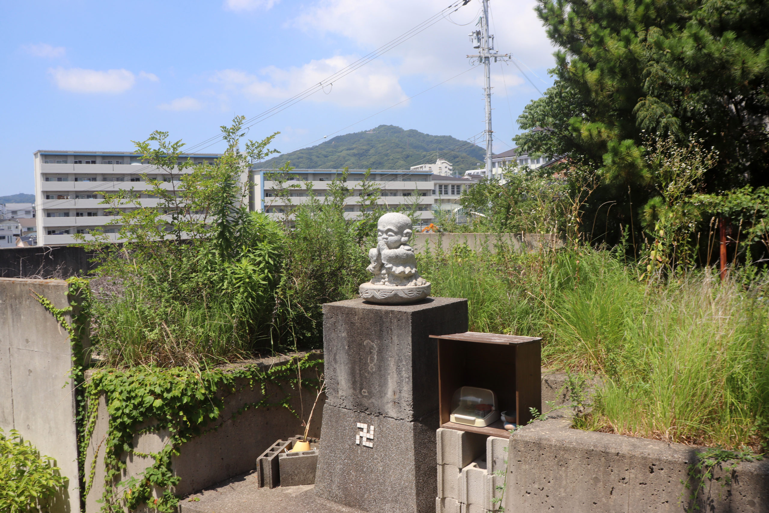 その後は今回のルートで何回も敷地内に入ることになるビッグなパーク会下山公園で一休み兼自己紹介。真夏開催なのでもう汗だく。そしてここからはもうバテてしまっていたし、今回のもう一人の案内人の中尾さんの知識の渦に飲まれるなどして記憶が朦朧としてくるので断片的な解説となる。
