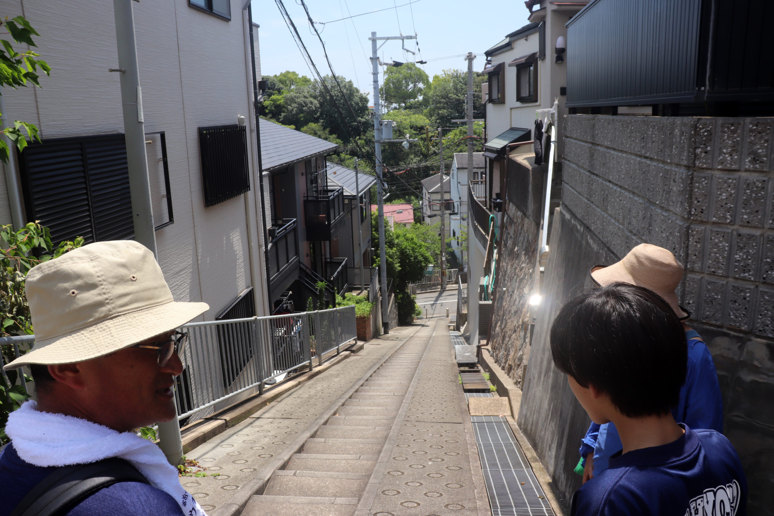 そして疲れ果てたみんなが狂気のテンションで勢いよく登っていったのは、登ったその後にはただ降りることしかできない、川崎病院手前の壁に突き当たる形状の階段。ここがクライマックスかな。