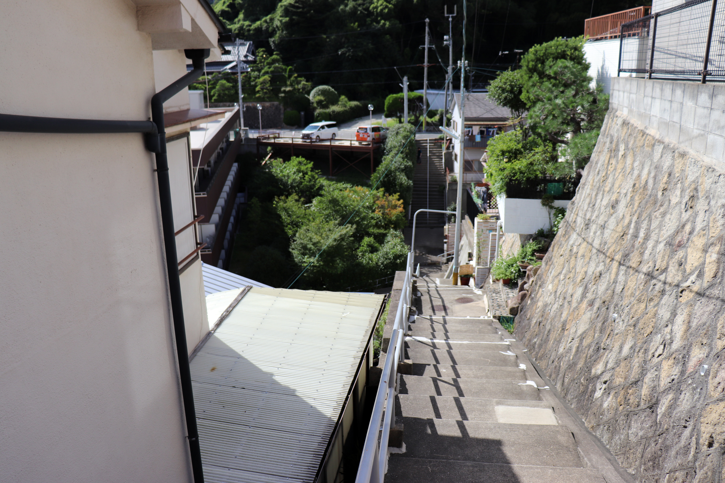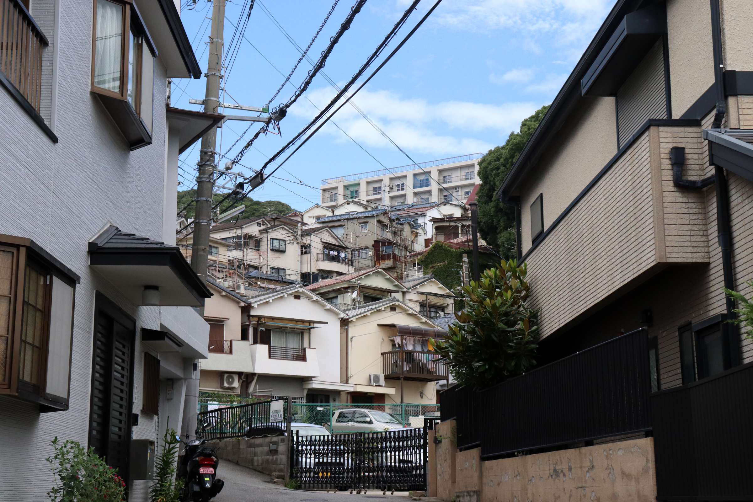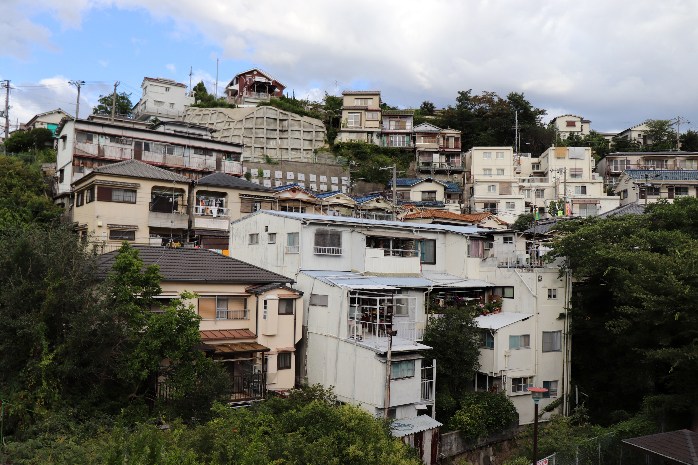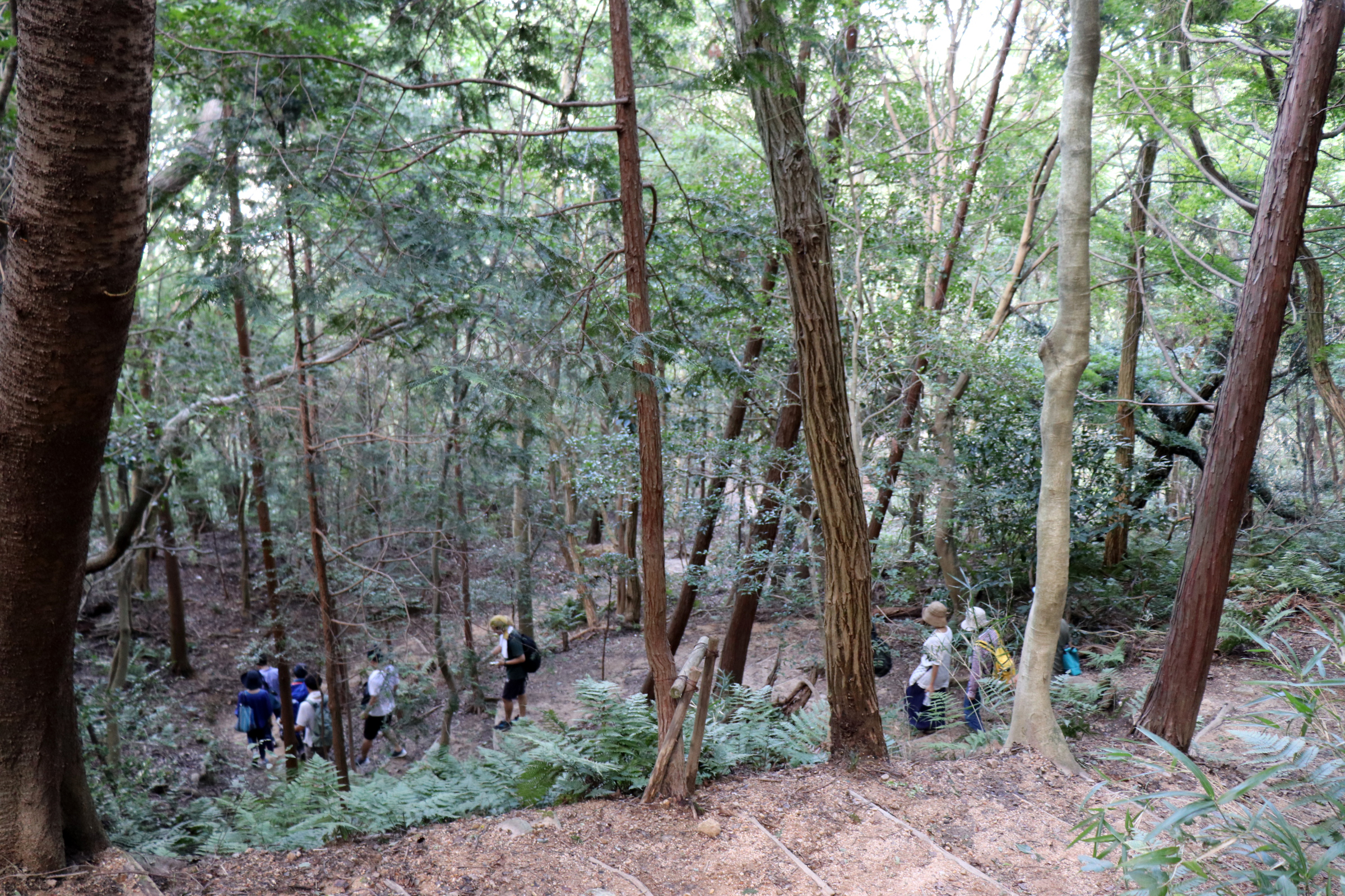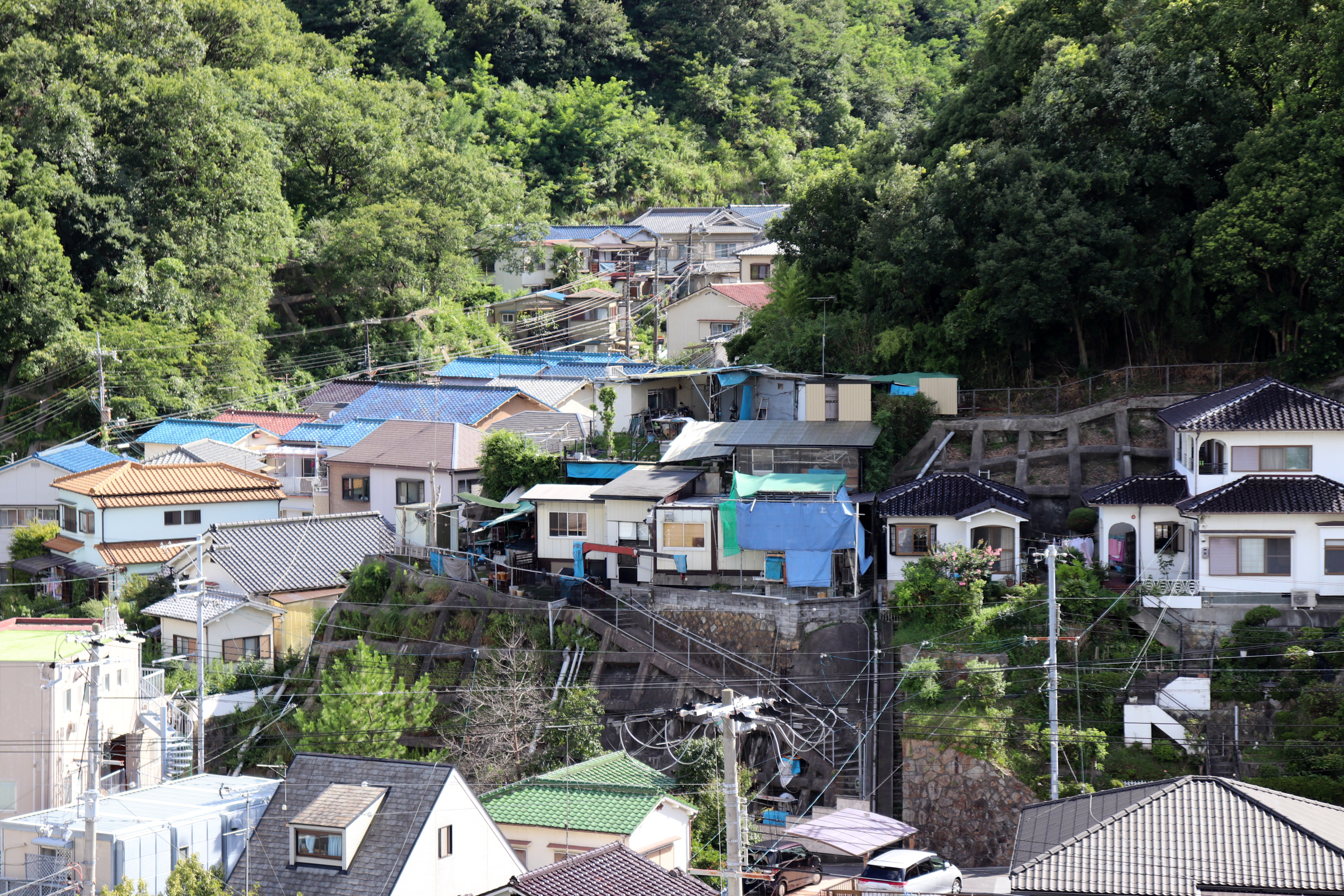 高取山頂まで登ってからは六甲全山縦走路に沿って丸山登山口に降り、そこから神戸電鉄丸山駅まで。このあたりには戸建て住宅の他に木造アパートが多い。これは神戸が海と山が近く平地が少ないために、湾岸部にある製鉄所や造船所などで働く労働者が暮らす住宅を傾斜地に作ったことによっている。丸山駅周辺も庶民的なたたずまいを見せていて、高級住宅地を想像していると肩透かしを喰らうのだが、参加いただいた皆さんはまちのリテラシーが高く、こういう文脈も含めて面白がっていただけた。