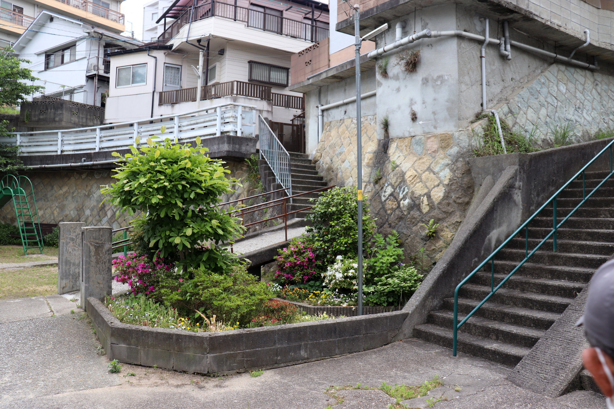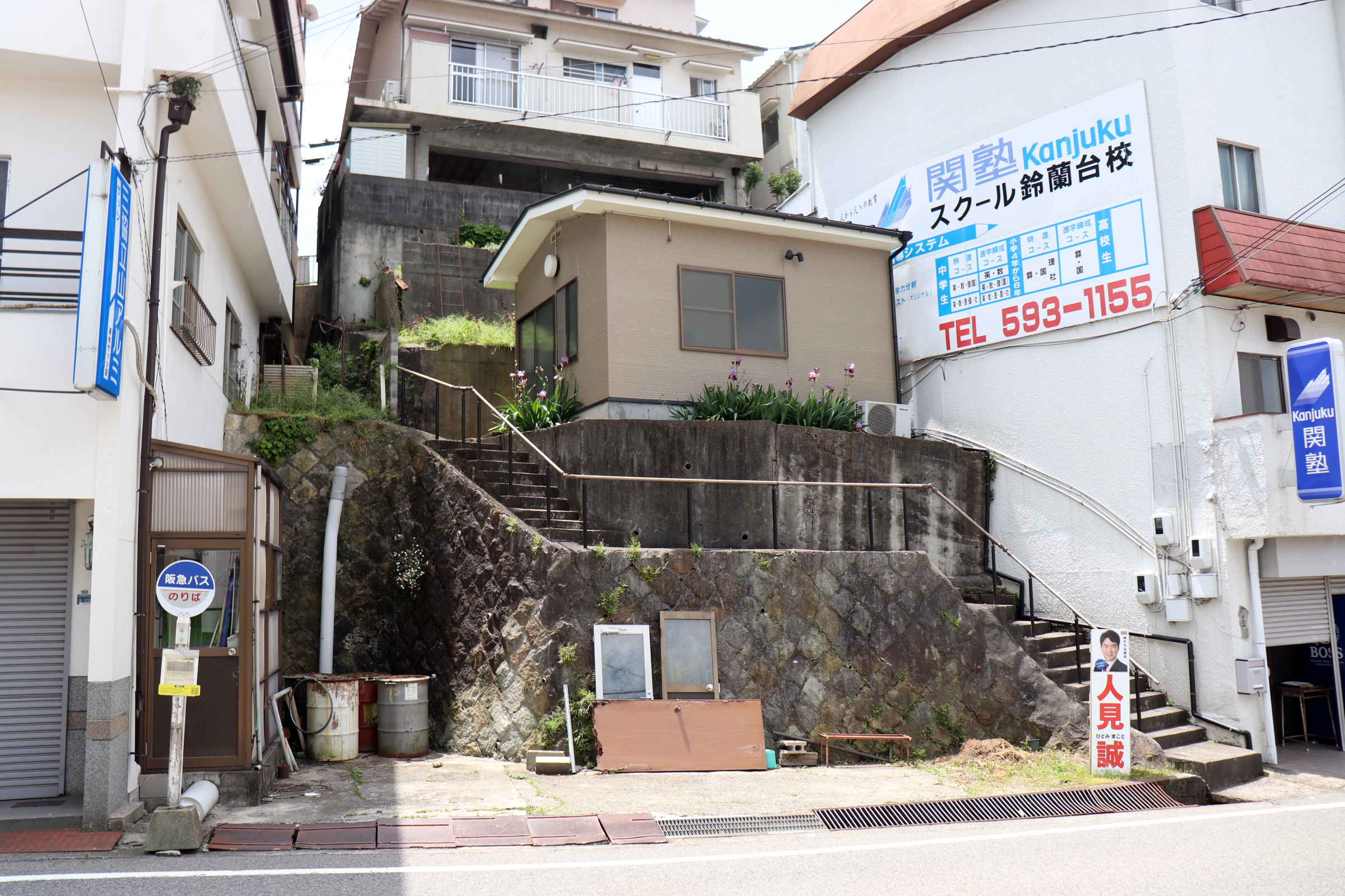 次の年、6月にやった2回目の鈴蘭台の町歩きは、前回の町歩きエリアと背中合わせ的なルートを辿って、Sunrise Sunset…「あさひヶ丘と夕日ヶ丘」な西町の斜面住宅地をメインに据えて、東町から鈴蘭台高校正門に至る70年代斜面マンションや元レナウン下請けだった縫製工場、付け替え前の旧小部川廃川敷も確かめて、住宅地で盛業中な飲食店で食事もして、西町エリアは踏査できたかな、という所。