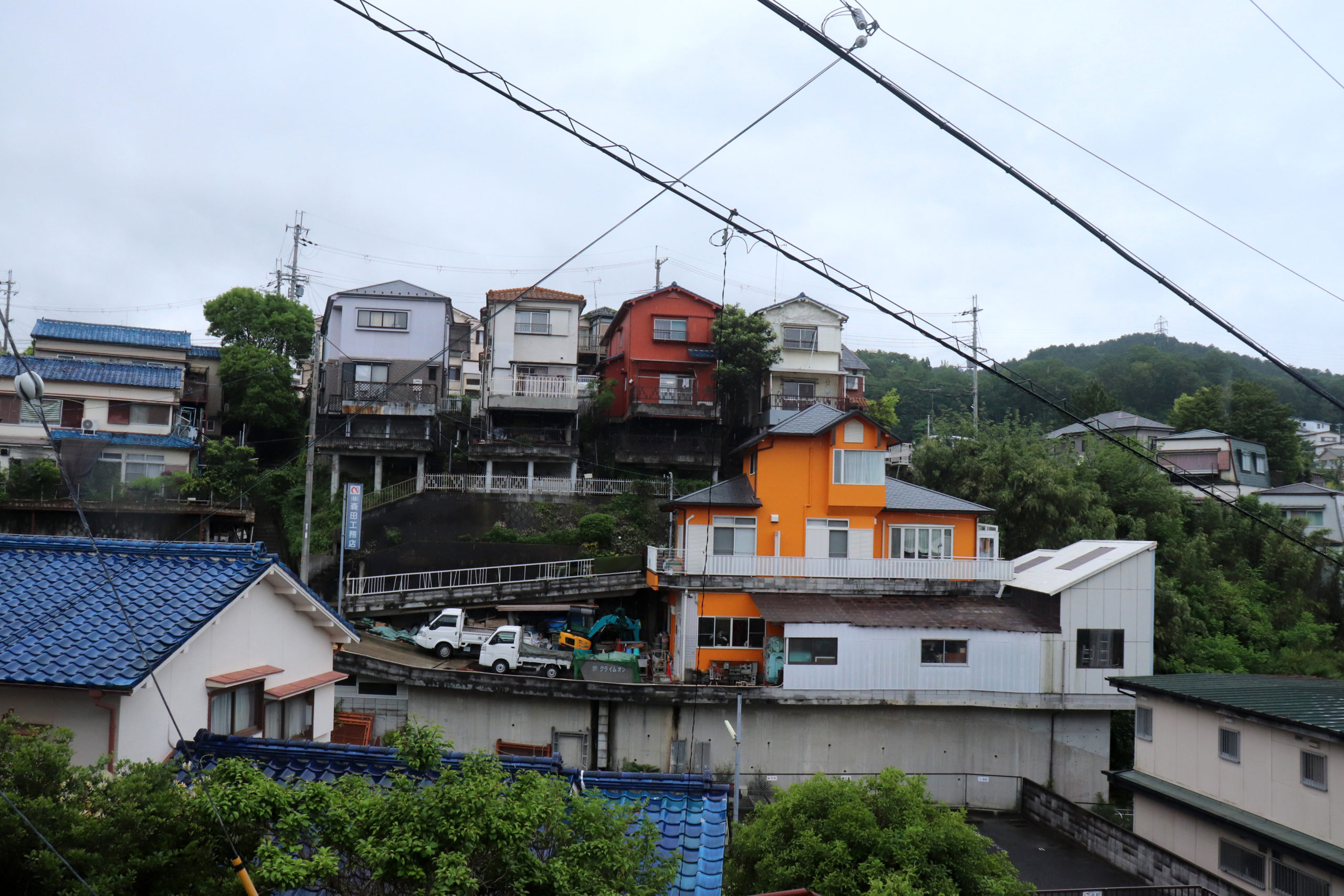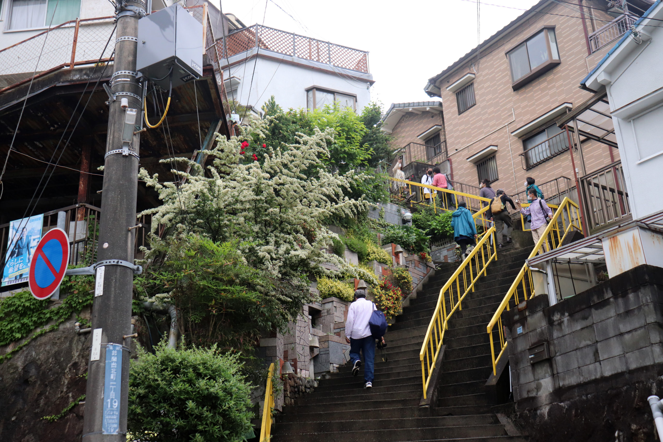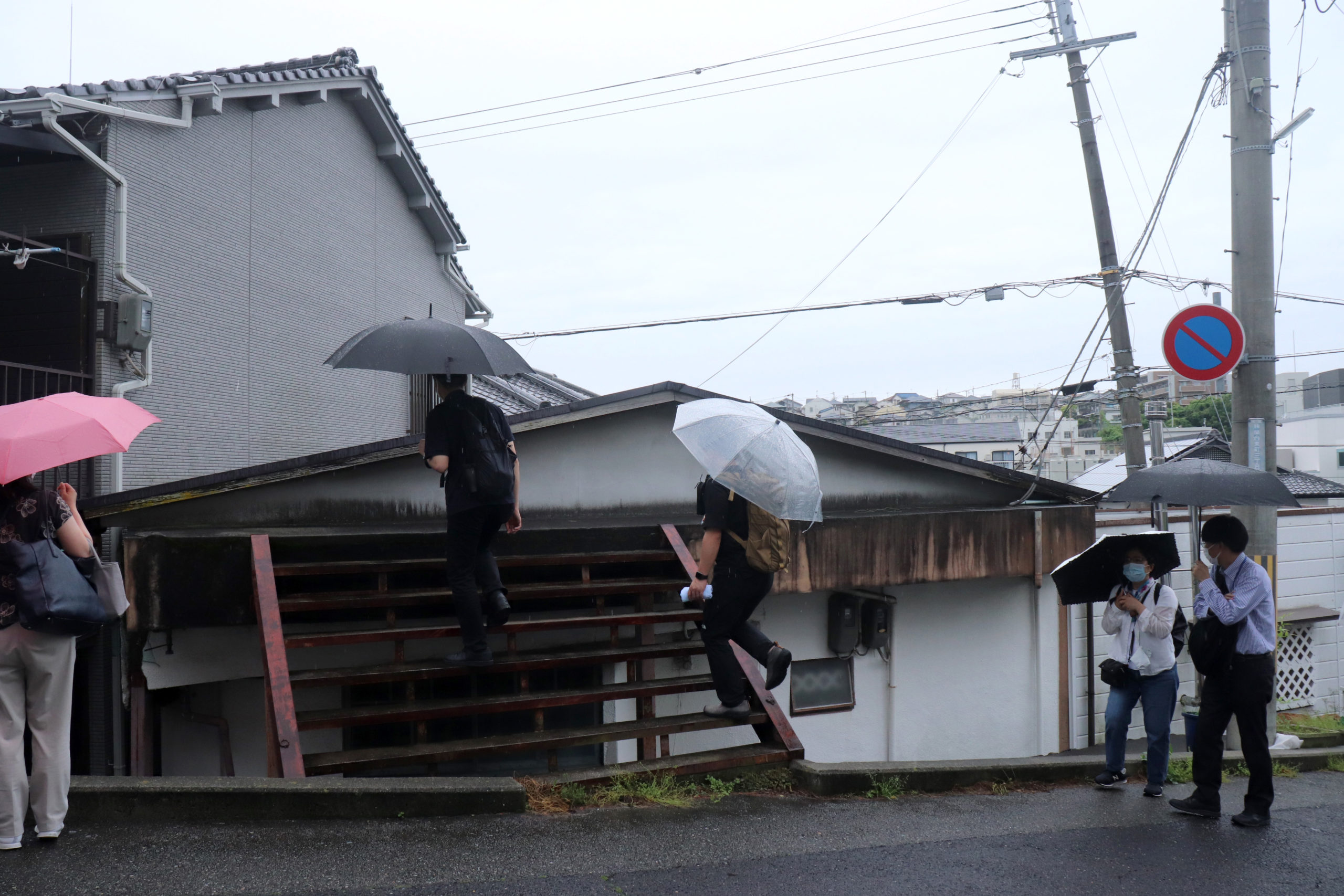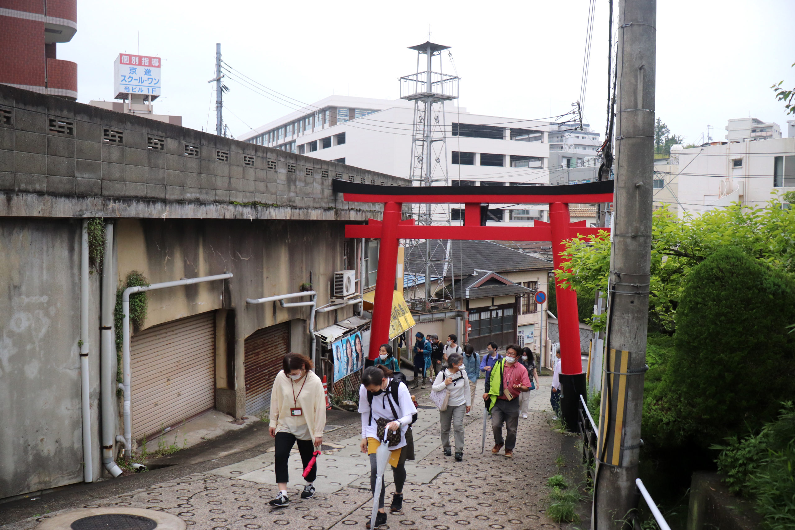 生憎の雨天での開催になったが、神鉄鈴蘭台車庫とその周辺、神戸明石線の高架の下で自己紹介タイムをやってからの、東町の別荘地の面影から1950年代以降の斜面住宅地の形成過程をなぞるように歩いた。途中で、移住して来たアーティストの開いた「ギャラリー」にも立ち寄ったり。小部小学校から貸し農園になっているかつての水田と旧兵庫商業高校西側の小道から神社の高台にアタック。超絶な階段や持ち出し基礎の人工地盤上のアパートなどの絶景を見せて、旧北区役所のあたりもトレースして、町歩きを終えた。