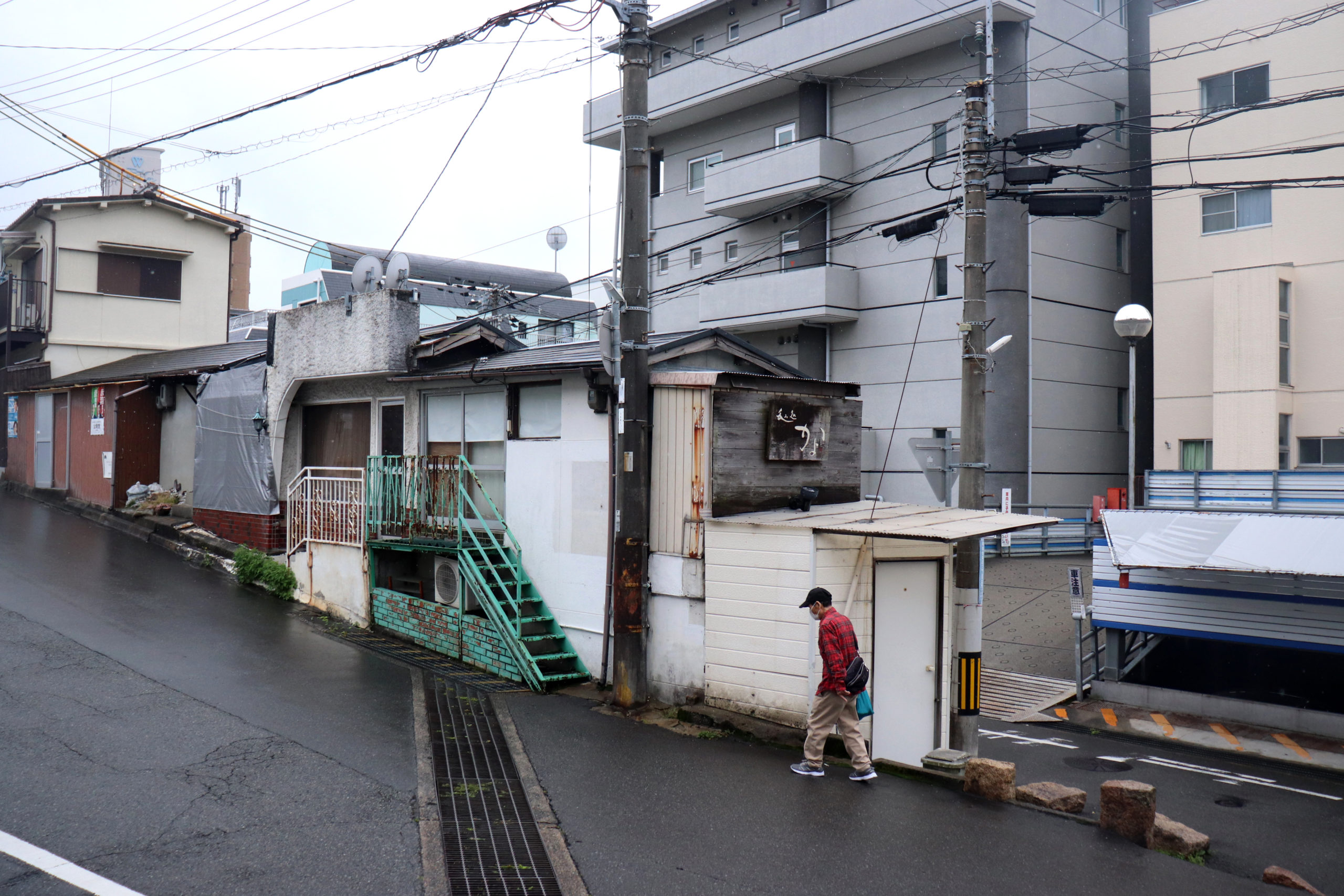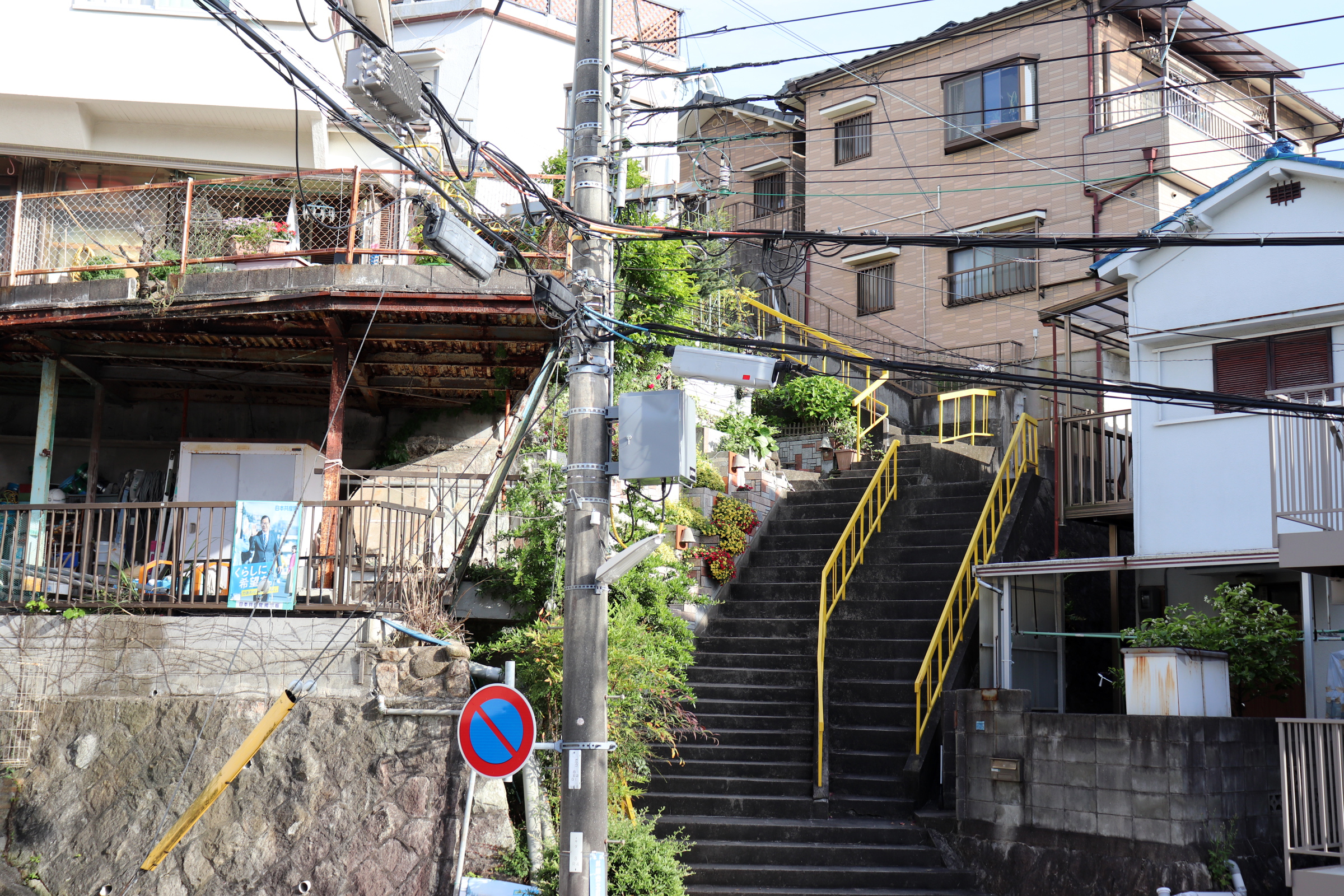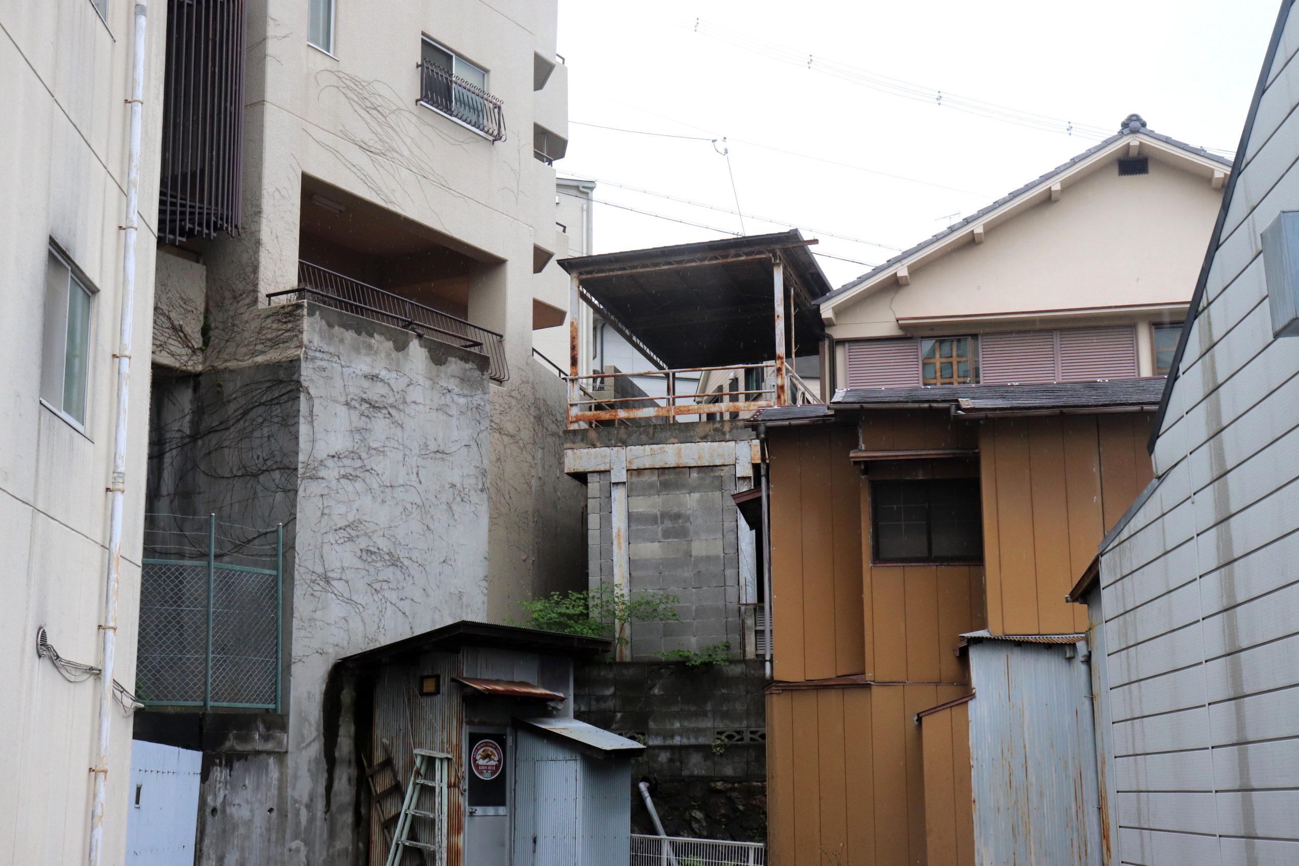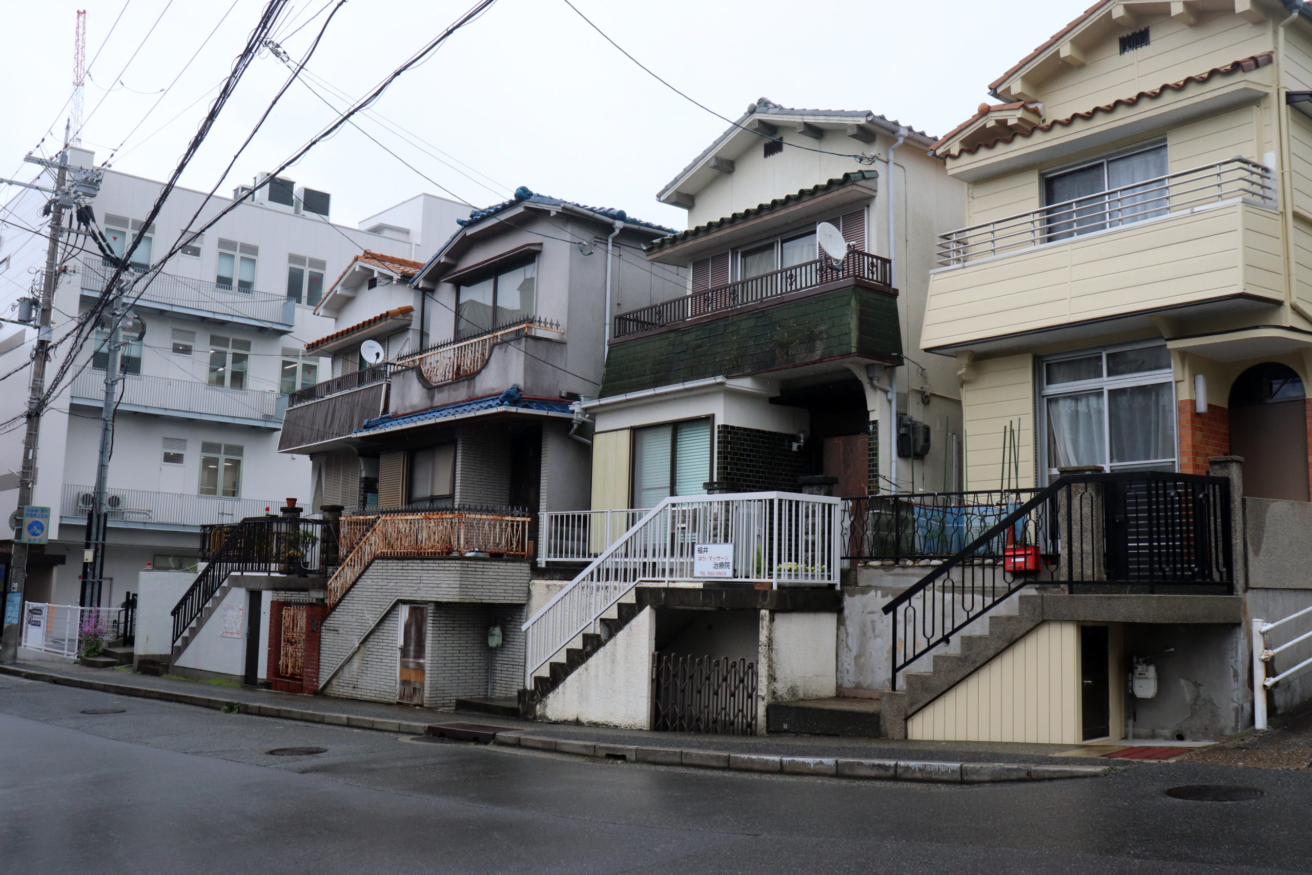 生憎の雨天での開催になったが、神鉄鈴蘭台車庫とその周辺、神戸明石線の高架の下で自己紹介タイムをやってからの、東町の別荘地の面影から1950年代以降の斜面住宅地の形成過程をなぞるように歩いた。途中で、移住して来たアーティストの開いた「ギャラリー」にも立ち寄ったり。小部小学校から貸し農園になっているかつての水田と旧兵庫商業高校西側の小道から神社の高台にアタック。超絶な階段や持ち出し基礎の人工地盤上のアパートなどの絶景を見せて、旧北区役所のあたりもトレースして、町歩きを終えた。