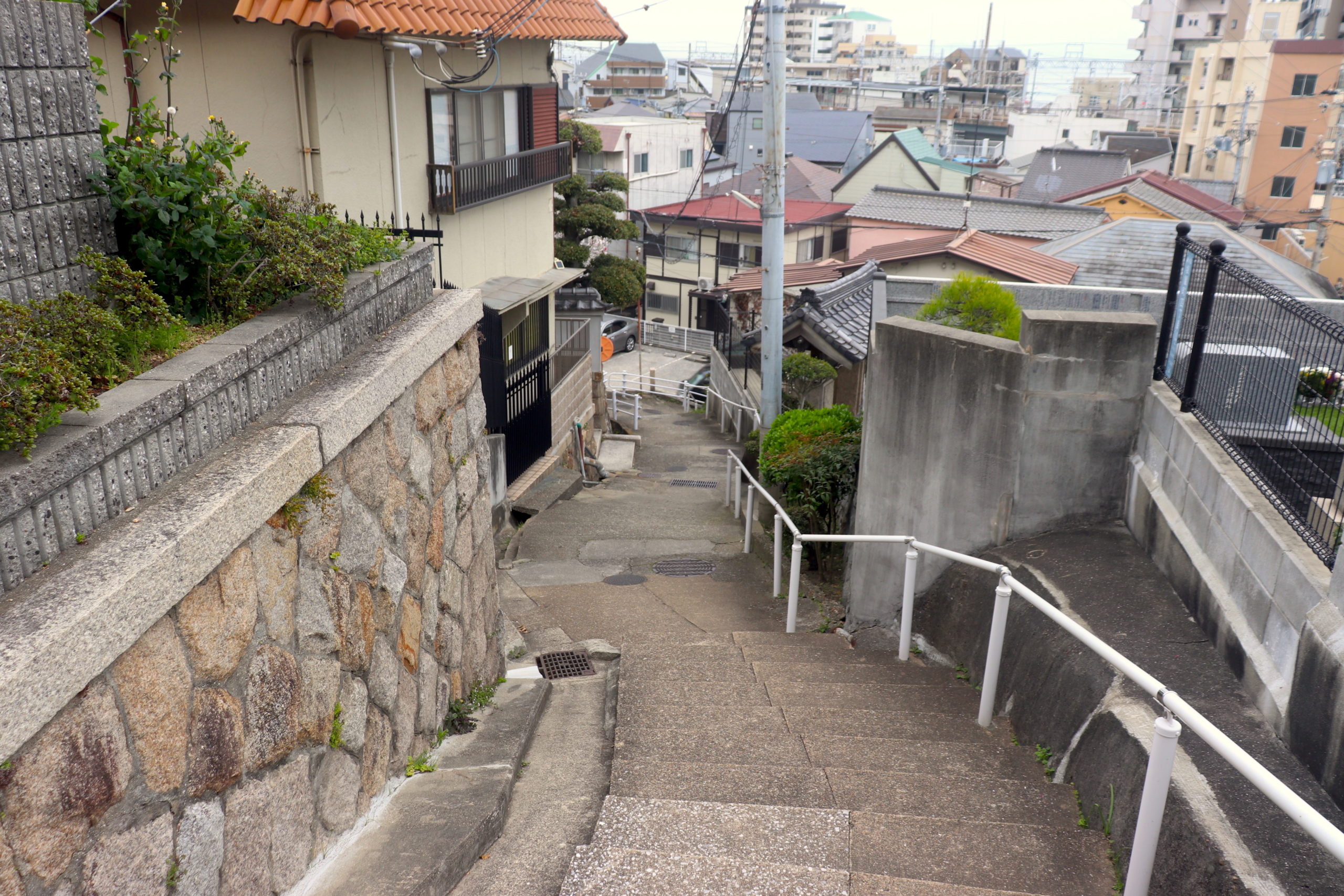 塩屋の階段の中でも、その佇まいの美しさと構造の複雑さはピカイチ。