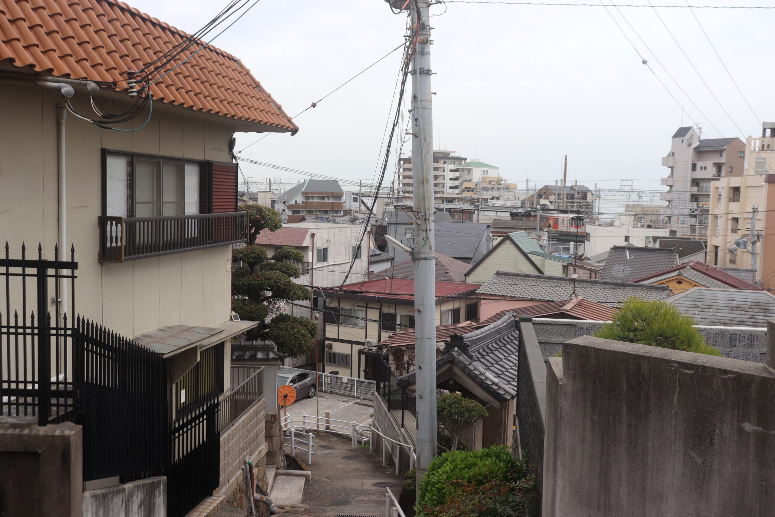 2018年にシオヤプロジェクト主催で「尾道×塩屋|尾道、塩屋へ行く」という2日間のトークフェスを行いました。20名ものゲストが尾道からやってきた。民族大移動。キャッチコピーは「斜面地があることをデフォルトとする2つの町、尾道と塩屋。水平なのは近くに見る海と、たまに使う水平器くらいで、だいたいナナメ」。ナナメデフォルトという極地的流行語も作った、この2つの町の交流イベントのメインビジュアルは、尾道と塩屋のよく似た階段の平行提示でした。その時に使ったこの階段を、僕はその後「尾道階段」と呼んでいます。